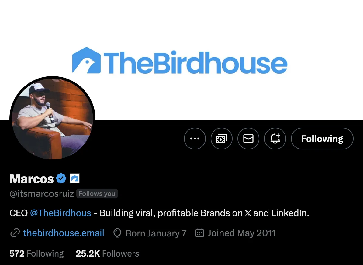 Like I mentioned before, I'm the Founder of The Birdhouse - the #1 X & LinkedIn personal branding agency.